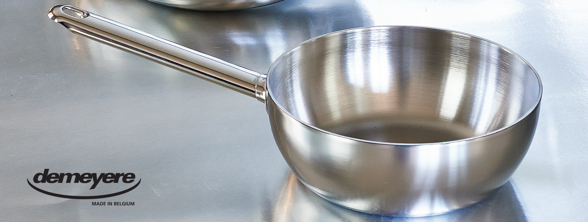 Demeyere grundat 1908 i Belgien tillverkar högkvalitativa köksredskap i rostfritt stål där materialen är anpassade efter produkttypen som skapas.