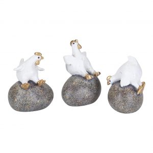 Hönor på Ägg 5,8cm 3st, Vit/Guld
