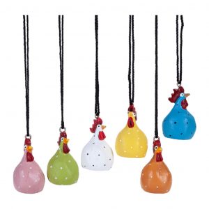 Höna 4cm Hängande 6-pack, Vit/Gul/Grön/Rosa/Orange/Turkos