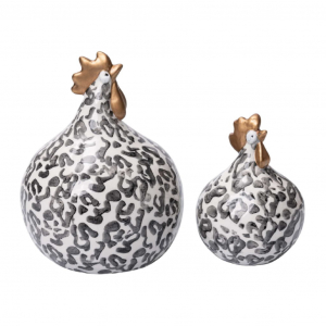 Höna 4cm Hängande 6-pack, Vit-Svart/Guld