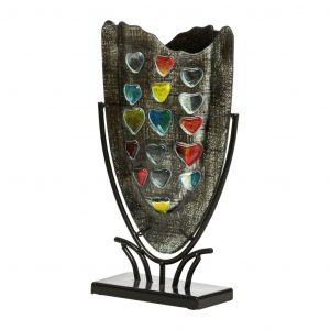 Glasvas i Smidesställning 37cm, Hjärtmosaik