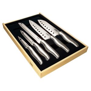 Calgary Knivset 5 delar stål Kock 32cm+bröd 32cm+japansk kock 28cm+all 23cm+skal 20cm
