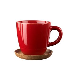 Höganäs Kaffemugg 33cl med Träfat, Äppelröd Blank