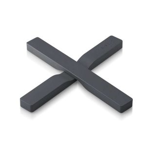 Grytunderlägget kan läggas som ett kryss under grytor och mindre fat, och delas i två under större fat eller exempelvis långpannor. De inbyggda magneterna gör att grytunderlägget följer med grytan runt på bordet, och efter användning tar underlägget minimalt med plats i lådan.