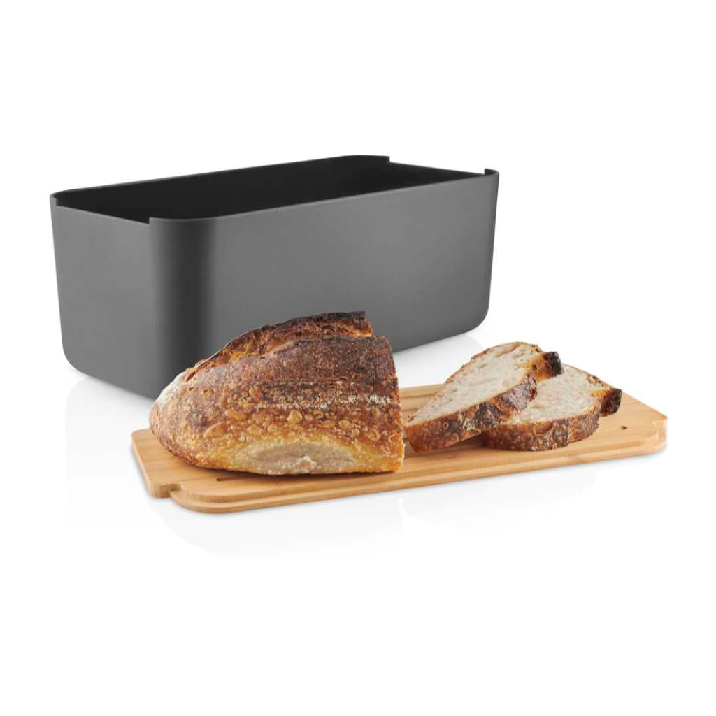 Förvara ditt bröd på rätt sätt och håll det färskt längre med en praktisk brödlåda på köksbänken. Lådans lock av oljad bambu är samtidigt en integrerad, robust skärbräda med praktiska räfflor som samlar smulorna när brödet skärs upp. Själva lådan tål maskindisk, men locket ska handdiskas. Tillverkad av plast och oljad bambu. Mått: L: 42 x B: 19 x B: 15,5 cm (9 liter).