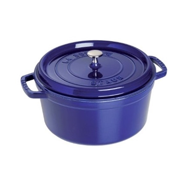 Den mörkblå grytan i serien La Cocotte från Staub passar i alla kök. Den är gjord i gjutjärn, ett material med god värmelednings- och värmelagringsförmåga. Med en kapacitet på 5,2 l och en diameter på 26 cm är den runda grytan i mörkblått perfekt för större hushåll eller för restaurangkök. Med hjälp av den här stekgrytan lagar du skonsamt nyttig mat utan större ansträngning. Locket ligger tätt mot grytan, så att värmen bevaras. Det har dessutom en droppstruktur som gör att det samlade kondensvattnet droppar tillbaka över maten. Den kan användas på alla typer av spisar, även på induktionshällar. Men det är inte bara gjutjärn som gör jobbet i den här grytan. Materialet är emaljerat, vilket ger en optimal värmelagringseffekt. Det gör att värmen avges jämnt över ingredienserna. Bräseringseffekten, när ingrediensernas inneboende smak förstärks, är en typisk egenskap hos denna typ av grytor. Denna gryta i mörkblått från Staub har mängder med fördelar och kompletterar ditt kök med ett användbart redskap som du ofta kommer använda, både till vardags och fest.