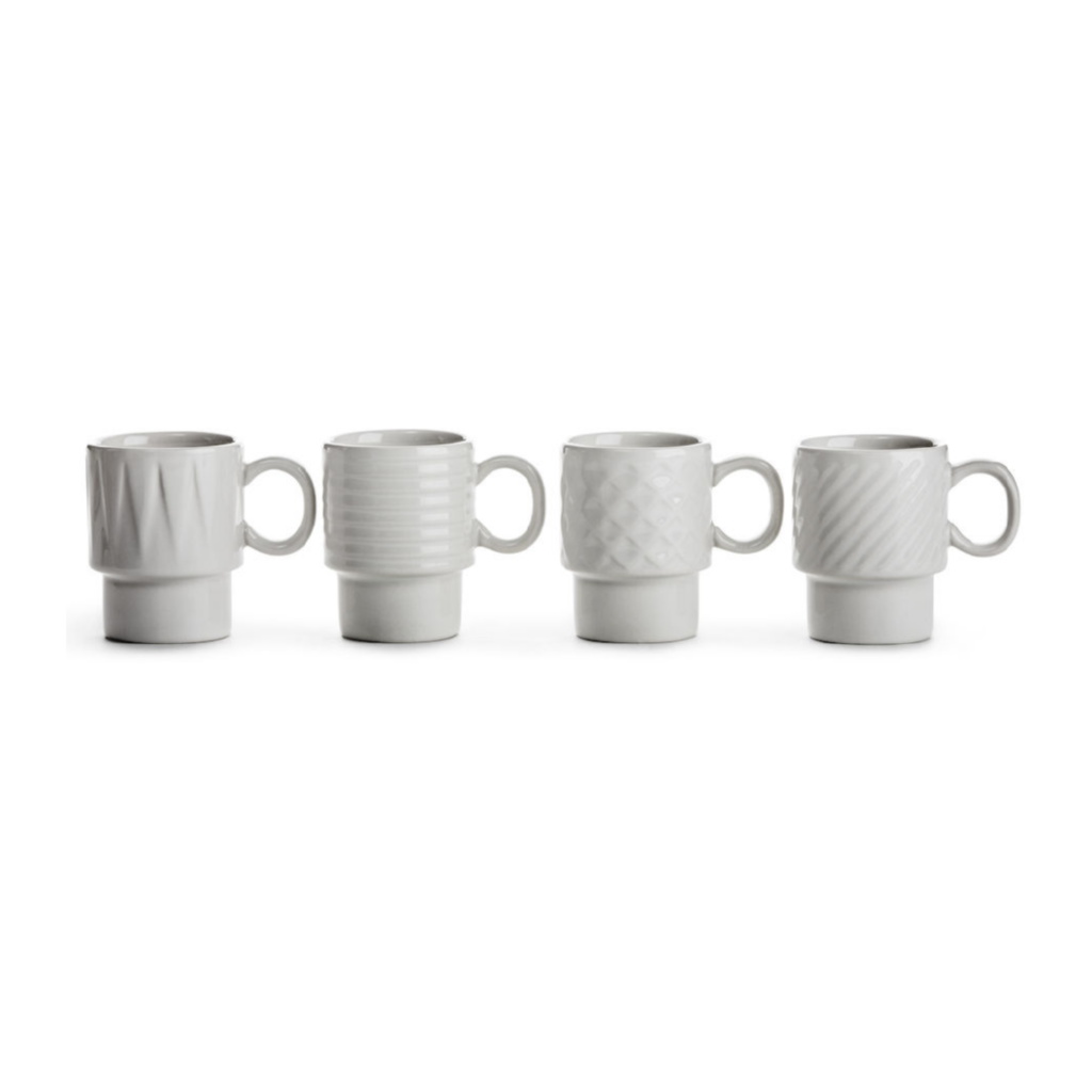 Espressomugg 4-pack med karakteristisk relief. Espressomuggen är en del i serien Coffee & More, framtagen av Sagaform i samarbete med designern Margot Marolo. Seriens design är en flört med 70-talets direkta, lekfulla och raka språk. Serien finns i olika delar, mönster och färger och gör sig allra bäst i en härlig mix av allt! Tål mikrovågsugn och maskindisk.