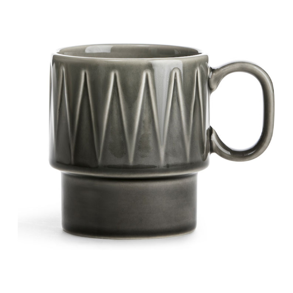 Kaffemugg med karakteristisk relief. Kaffemuggen är en del i serien Coffee & More, framtagen av Sagaform i samarbete med designern Margot Barolo. Seriens design är en flört med 70-talets direkta, lekfulla och raka språk. Serien finns i olika delar, mönster och färger och gör sig allra bäst i en härlig mix av allt! Tål mikrovågsugn och maskindisk.