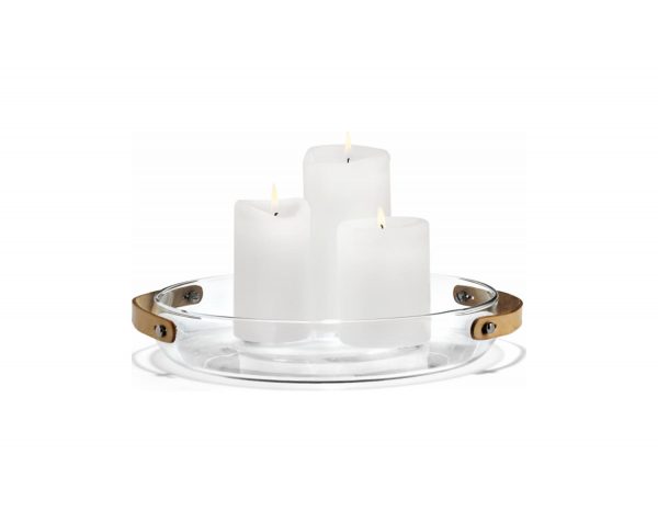 Material: munblåst glas och läder. Tål ej maskindisk. Design: Maria Berntsen. Diameter: 270 mm. Höjd: 40 mm. Art.nr 4343519