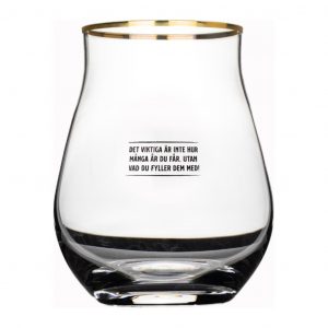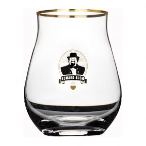 Edward Blom är gastronomen, kulturhistorikern och arkivarien som blivit känd som Sveriges främste livsnjutare. Med sin festliga framtoning och härliga stämma lämnar hans ordval ett starkt avtryck. Hans mest kända oneliners kan vi nu alla njuta av på en serie guldkantade öl-, whisky/tasting- och snapsglas.
