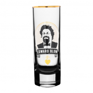 Edward Blom är gastronomen, kulturhistorikern och arkivarien som blivit känd som Sveriges främste livsnjutare. Med sin festliga framtoning och härliga stämma lämnar hans ordval ett starkt avtryck. Hans mest kända oneliners kan vi nu alla njuta av på en serie guldkantade öl-, whisky/tasting- och snapsglas.