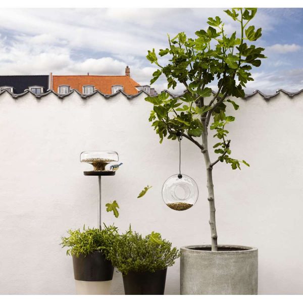 Designen gör det lätt för småfåglar att landa på kanten och äta. Dispensern kan enkelt tas av och tål maskindisk. Glaset är frostsäkert, så fågelbordet kan stå ute i trädgården året runt.