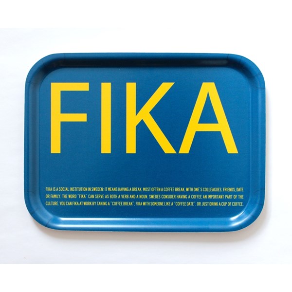 FIKA Bricka 27x20cm gul/blå engelsk text