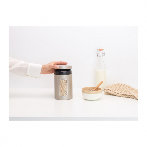 Vill du bli bättre på förvaring? Investera i denna 1,4 liters Förvaringsburk med Fönster från Brabantia. Den har ett tätt ‘klick’-lock som håller innehållet fräscht längre. En annan fördel är att den har ett fönster av antistatisk plast, så att kaffe, te och annat innehåll i burken alltid är synligt.
