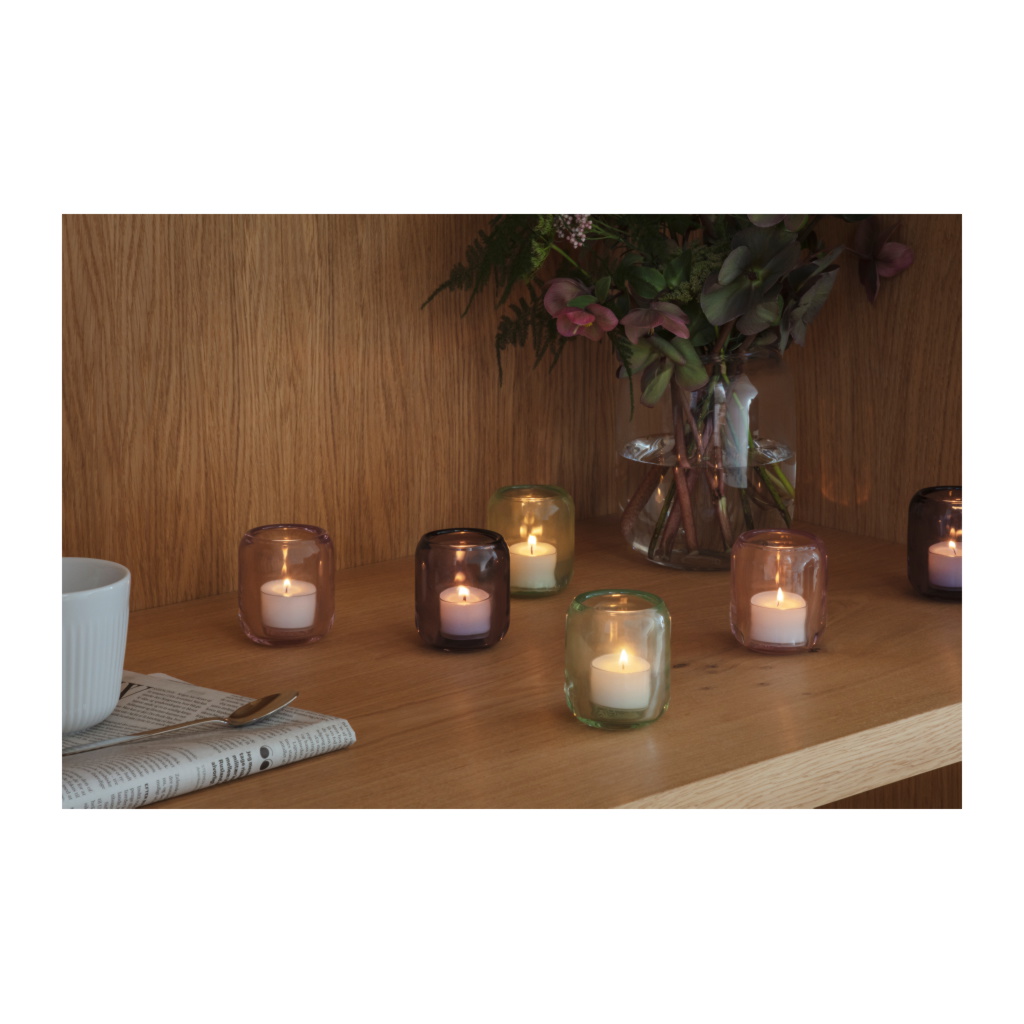Glaslanternan skapar stämning – ställ en eller flera lanternor på matbordet, på fönsterbrädet eller häng upp dem på terrassen eller i träden i trädgården. Lanternan är försedd med en kraftig vajer så att den hänger stabilt och kan flyttas runt även när ljuset är tänt. Du sätter enkelt in värmeljuset i lanternan. Lyft bara upp glaset och ställ värmeljuset på metallbottnen.