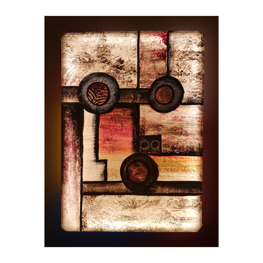 Glastavla med belysning Stor, Silverringar