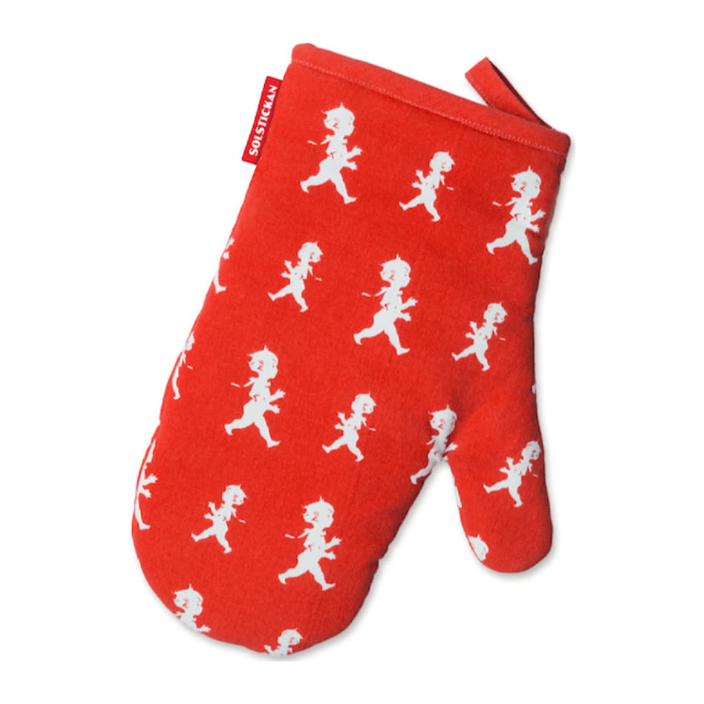 Vadderad Grytvante i 100% bomull. Repeterande mönster med avbildning av den klassiska Solstickepojken som skapades av Einar Nerman 1936.