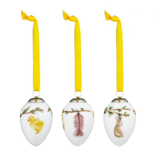 Påsken går ofta hand i hand med de första vårkänslorna – och just denna känsla har fångats på ett underbart sätt i Hammershøi Easter. Den spännande och vackra påskkollektionen är dekorerad med nyutslagna grenar och traditionella påsksymboler som handmålats av Rikke Jacobsen och därefter överförts till porslinet. Häng det fina hänget i fönstret eller i påskriset och skapa snabbt och enkelt påskstämning i hemmet. Paket med 3 st. Hammershøi Easter-kollektionen innehåller även en mugg, en tallrik, en bonbonjär och ett påskhänge.