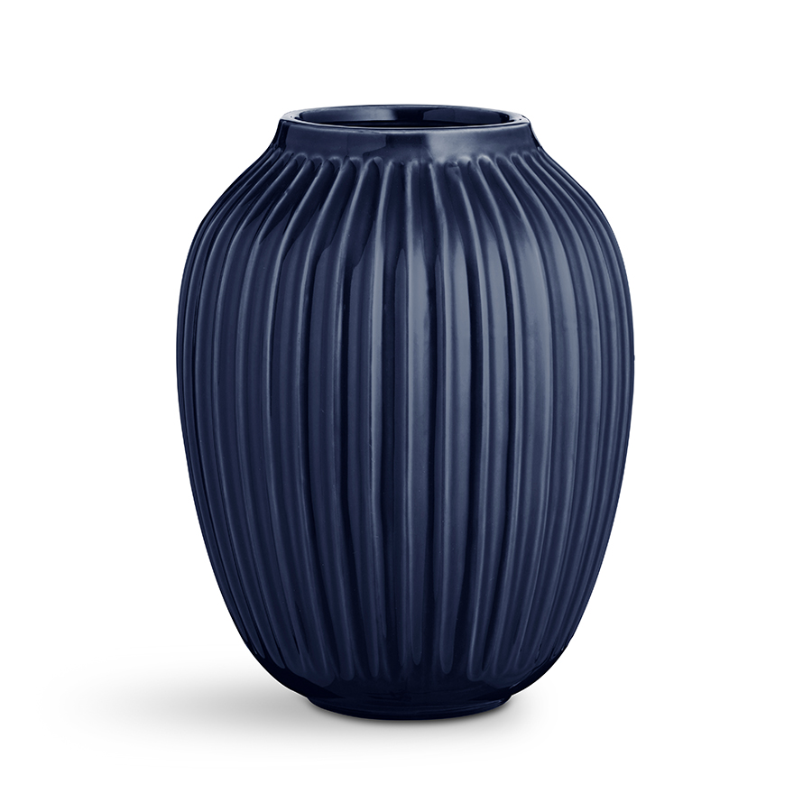 Denna eleganta vas i indigo från Hammershøi bidrar med en tidlös och exklusiv stil till heminredningen. Vasen har en nätt liten krage runt halsen som, tillsammans med räfflorna och vasens harmoniska formspråk, förlänger de färska blommorna som förenas i den eleganta keramiken. Kombinera med de övriga designföremålen i Hammershøi-indigo och skapa vackra stilleben.