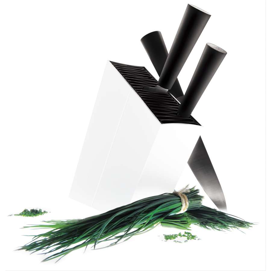 Knivblock lutande white. Aluminium, Plast. Längd: 20cm Bredd: 7,5cm Höjd: 31cm. Diskmaskinsäker: Ja Art.nr 515291