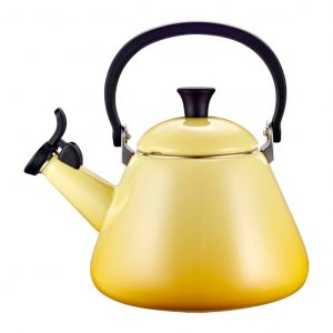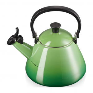 Le Creusets vattenkittel Kone med vissla är en klassisk, emaljerad stålkittel som kan användas på alla värmekällor inklusive induktion. Vattenkitteln har en stor botten som ger bra kontakt med värmekällan vilket ger en effektiv uppvärmning av vattnet. Vid användning på induktionshäll är den sladdlösa vattenkitteln faktiskt lika effektiv som en elektrisk vattenkokare. Vattenkitteln Kone har ett värmebeständigt handtag och en fast vissla som är lätt att öppna när vattnet ska hällas upp. Vattenkitteln rymmer 1,6 liter vatten och den maximala vattenkapaciteten är markerad på sidan av kitteln för att undvika överkokning. Vår kunniga personal hjälper dig gärna att välja rätt.