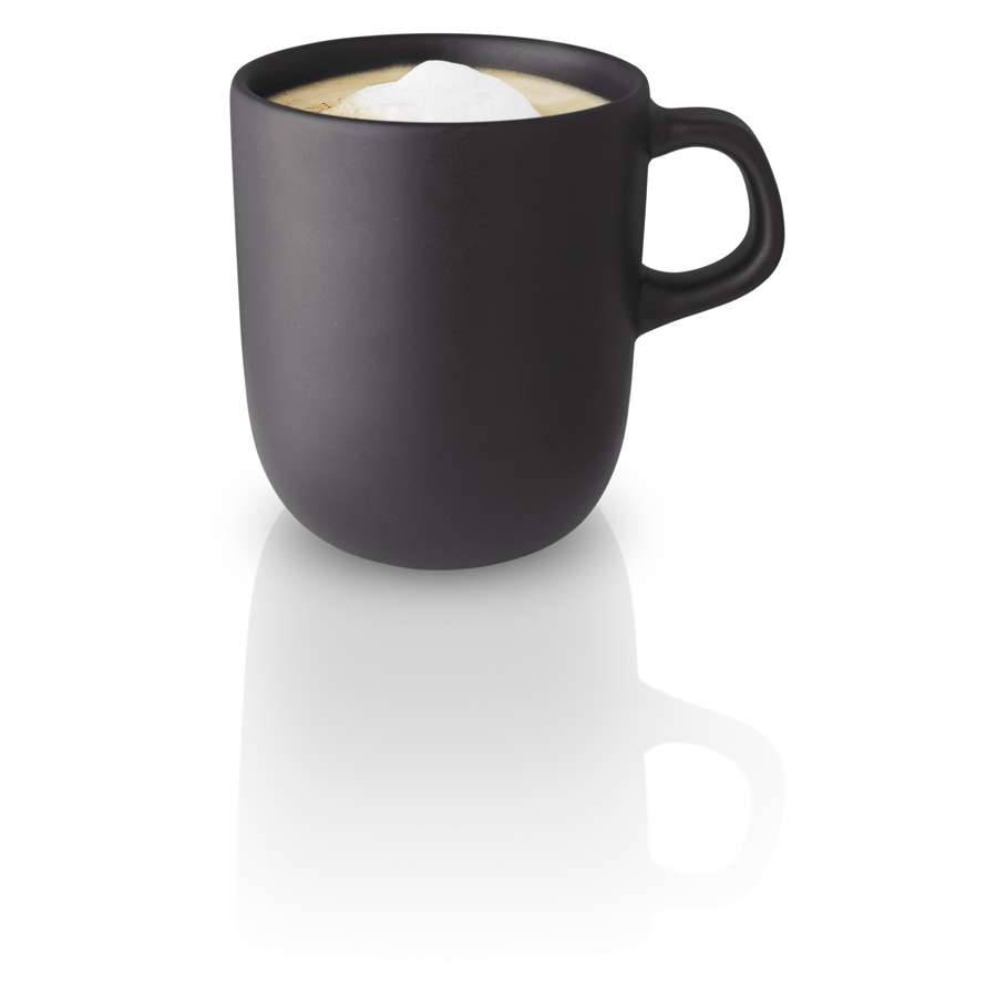 Koppen i stengods är med sin enkla form och varma svarta nyans både tillräckligt stilfull och robust för att användas varje dag. Tål ugn, mikrovågsugn, frys och diskmaskin.