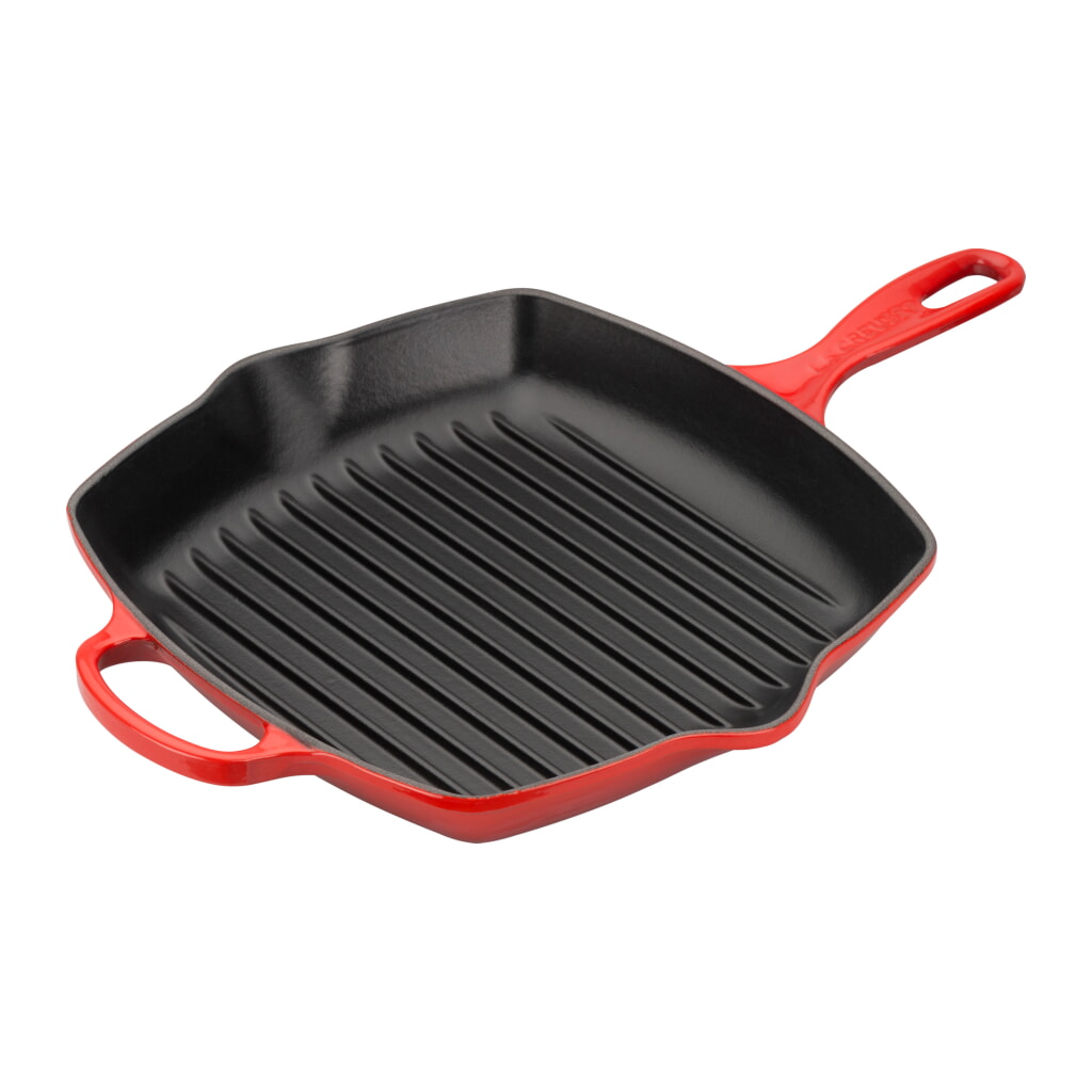 Le Creusets kvadratiska grillpanna i gjutjärn har en invändig svart emalj som är speciellt framtagen för matlagning som kräver höga yttemperaturer. Pannans kvadratiska form ger största möjliga stekyta och det integrerade hjälphandtaget gör hanteringen enkel och säker. Den räfflade ytan ger frestande grillränder på biffar, tonfisk- och laxkotletter, räkor, grönsaker eller kyckling. Grillpannan finns i ett brett urval av Le Creusets välbekanta färger så att den matchar köket och den personliga Le Creuset-samlingen. Pannan kan användas på alla värmekällor inklusive induktion och tål dessutom både ugn och att diskas i diskmaskin. Vår kunniga personal hjälper dig gärna att välja rätt.