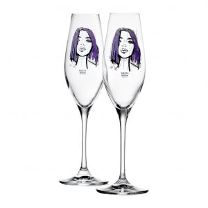 Anna Ehrners klassiska servisglasserie Line med den tunna glastråden, ett signum för svenskt kvalitetshantverk.