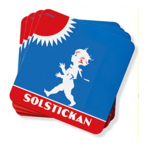 Kopp med repeterande mönster med avbildning av den klassiska Solstickepojken skapad av Einar Nerman 1936. Koppen är tillverkad i benporslin och rymmer 380 ml.