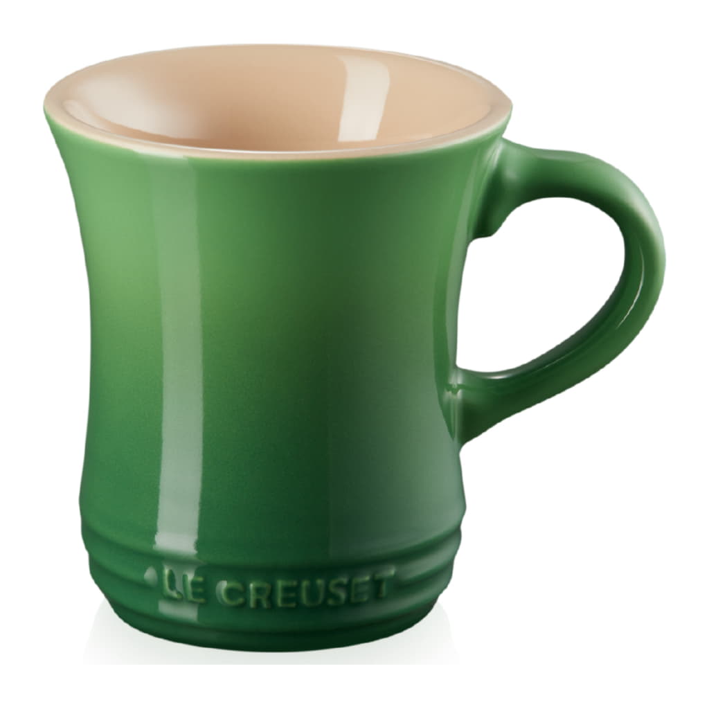 Muggen med formade sidor från Le Creuset har en användarvänlig och elegant design. Muggens diameter är störst upptill där muggen har en rundad kant som tillsammans med ett stort och massivt öra gör muggen idealisk att dricka ur. Muggen finns i ett brett urval av Le Creusets välbekanta färger. Stengodset absorberar varken smak, lukt eller färg från din varma dryck och tål dessutom maskindisk.