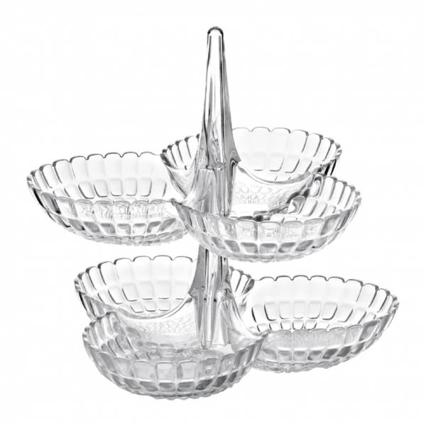 Uppläggningsfat 3-delars i två våningar från serien ‘TIFFANY’ i transparant