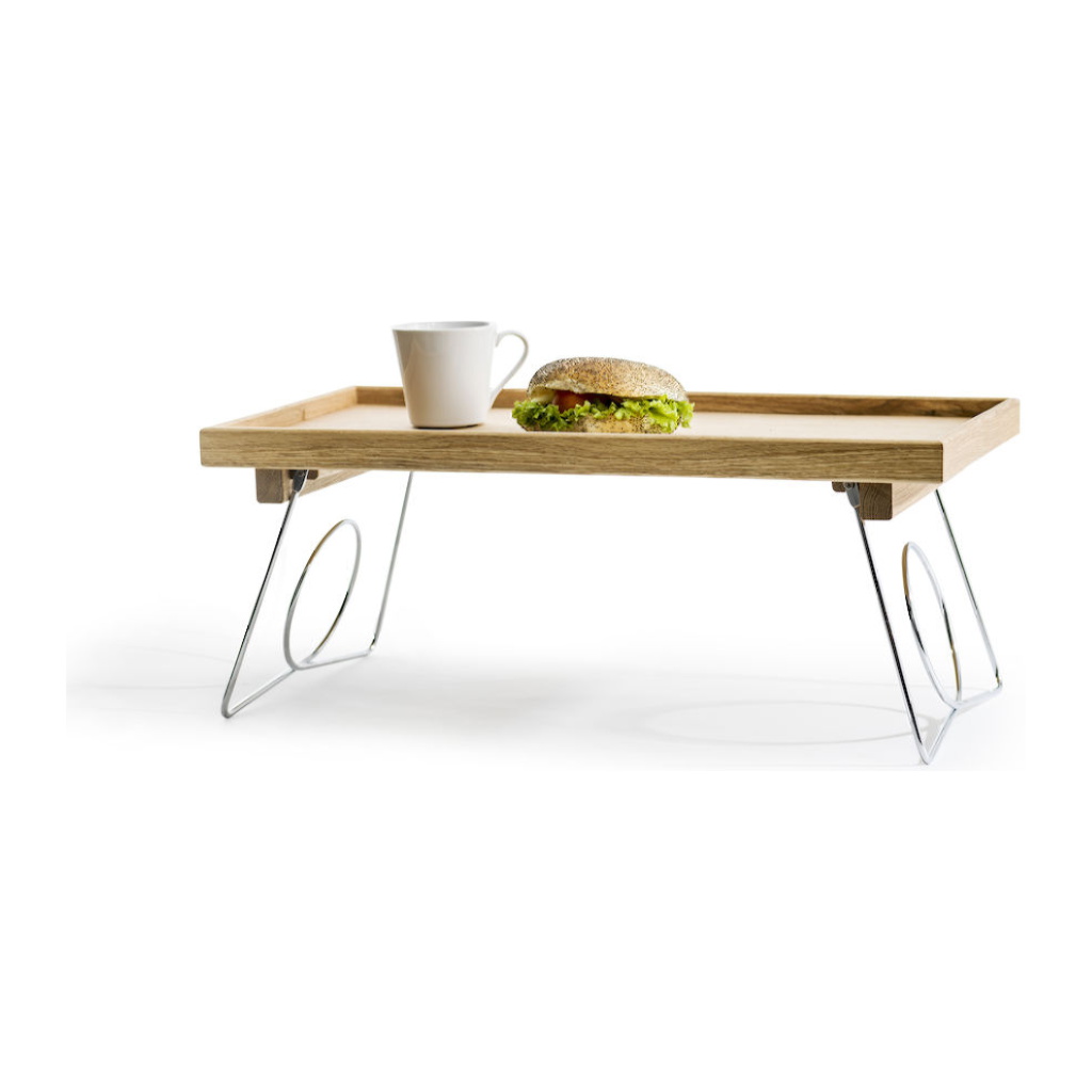 En bricka för långa söndagsfrukostar i sängen. Själva brickan är tillverkad i massiv ek och de hopfällbara benen utav rostfritt stål. Överraska någon du tycker om! Glöm inte att olja in brickan med jämna mellanrum.