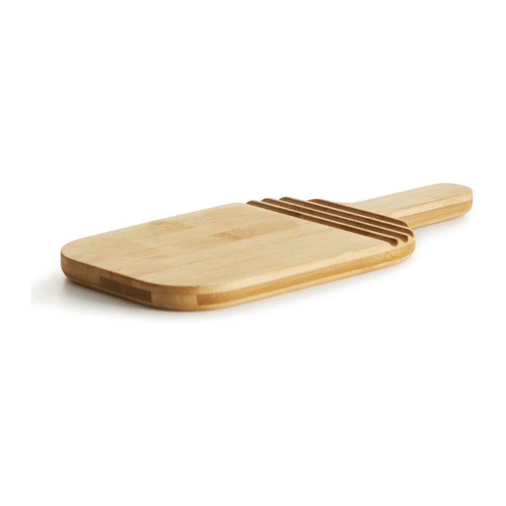 Skippa plasten och gör ett hållbart val med en skärbräda i bambu. Bambu är en snabbväxande och förnybar resurs med många fördelar. Materialet är starkt och naturligt antibakteriellt. Dessutom kräver odlingen lite vatten och sker utan bekämpningsmedel och konstgödsel. Denna lilla serverings-/skärbräda är formgiven av Anton Björsing. Brädan har ett smidigt handtag och skåror som är en kombination av snygg detalj och praktisk funktion, då de ser till att verktyg inte glider av lika enkelt.