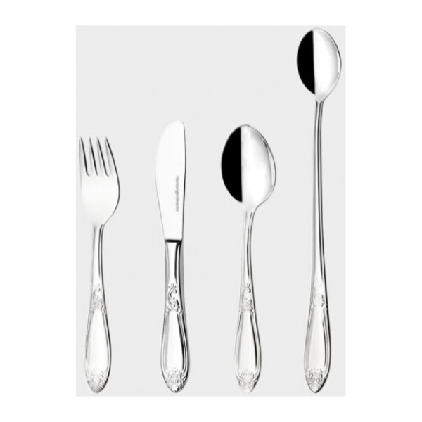 Innehåller kniv 15cm, gaffel 14,2cm, sked 14cm och barnsked 20cm