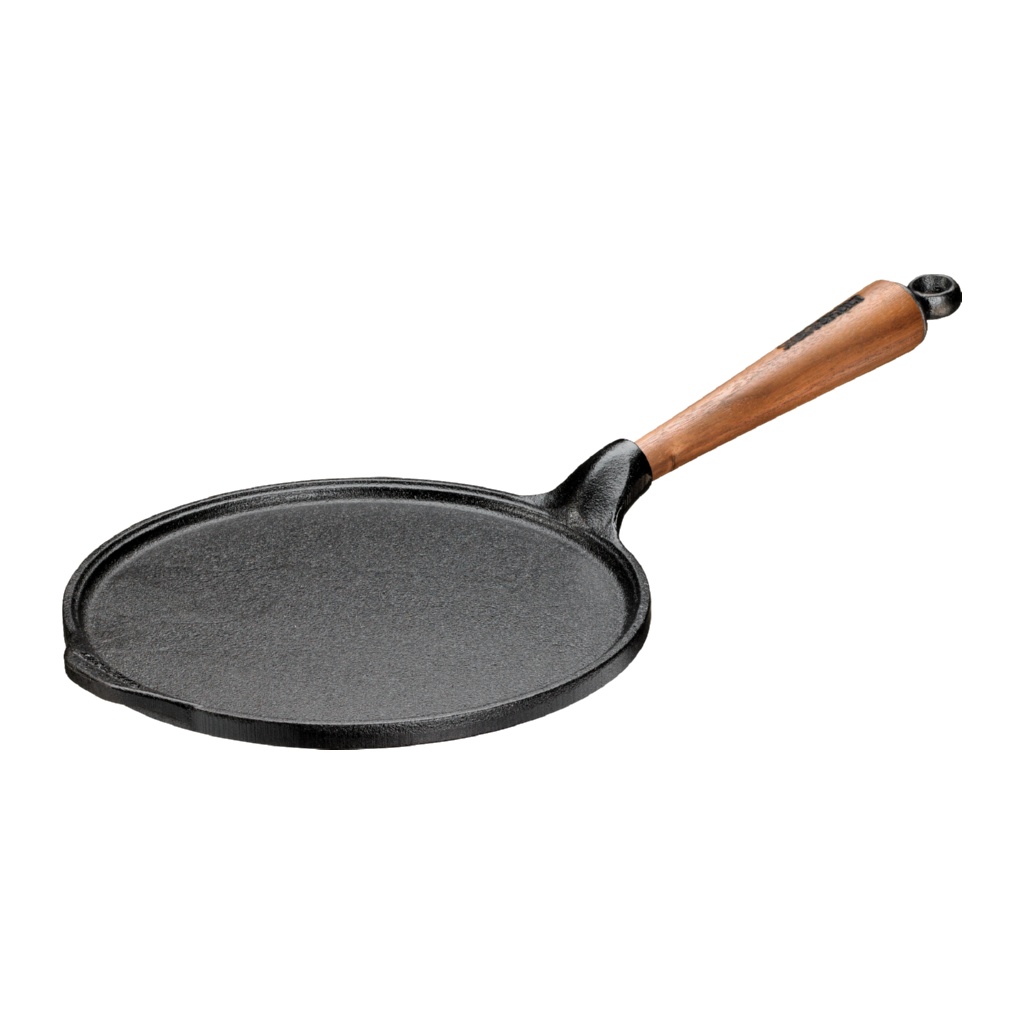 Gjutjärn, trä, stål och inbränd olja. Naturligt, enkelt, robust och fungerar på alla värmekällor. Med en naturlig non-stickyta som förbättras med användande är alla våra stekkärl gjorda för att hålla, år efter år, från generation till generation. Det är ett enkelt men ändå krävande hantverk. Varje detalj gjuts i en unik sandform som sedan slås sönder. Därför blir varenda Skepphultprodukt unik och inte den andra exakt lik. Stolt hantverk från vårt gjuteri i de småländska skogarna. Tillverkat i Sverige med 25 års gjutjärnsgaranti. Handtag i valnötsträ som isolerar värme. 5 mm tjock botten för att sprida värme jämnt, få fin stekyta och för att hålla formen i generationer. Konkavt precisionssvarvad botten som gör att pannan står stabilt på spisen även vid mycket hög värme. Handslipade kanter runt om pannan. Stödhandtag som förenklar hantering. Fungerar på alla värmekällor såsom induktion och gas. Naturlig non-stick av svensk ekologisk rapsolja. Lätt att använda – klarar alla redskap, spisar och hög värme. Servera gärna direkt från våra produkter som håller värmen länge, men förvara inte mat i dem. Rengör med hett vatten efter användning. Torka järnet fritt från fukt, gärna på spisens eftervärme. Observera att gjutjärn inte ska rengöras i diskmaskin och att inoljade produkter kan ge upphov till fläckar vid placering på ömtåliga ytor.