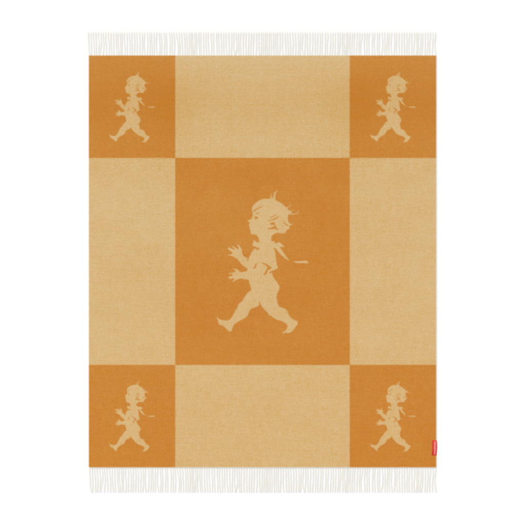 En mysig pläd tillverkad i 100% New Zeeland ull med fransar längs kortsidorna. Mönster med avbildning av den klassiska Solstickepojken ritad av Einar Nerman 1936.
