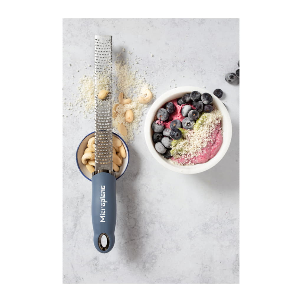 Fint rivjärn. Lämpligt för bl.a. citrusskal, vitlök, parmesan, muskot och lök. Softgriphandtag