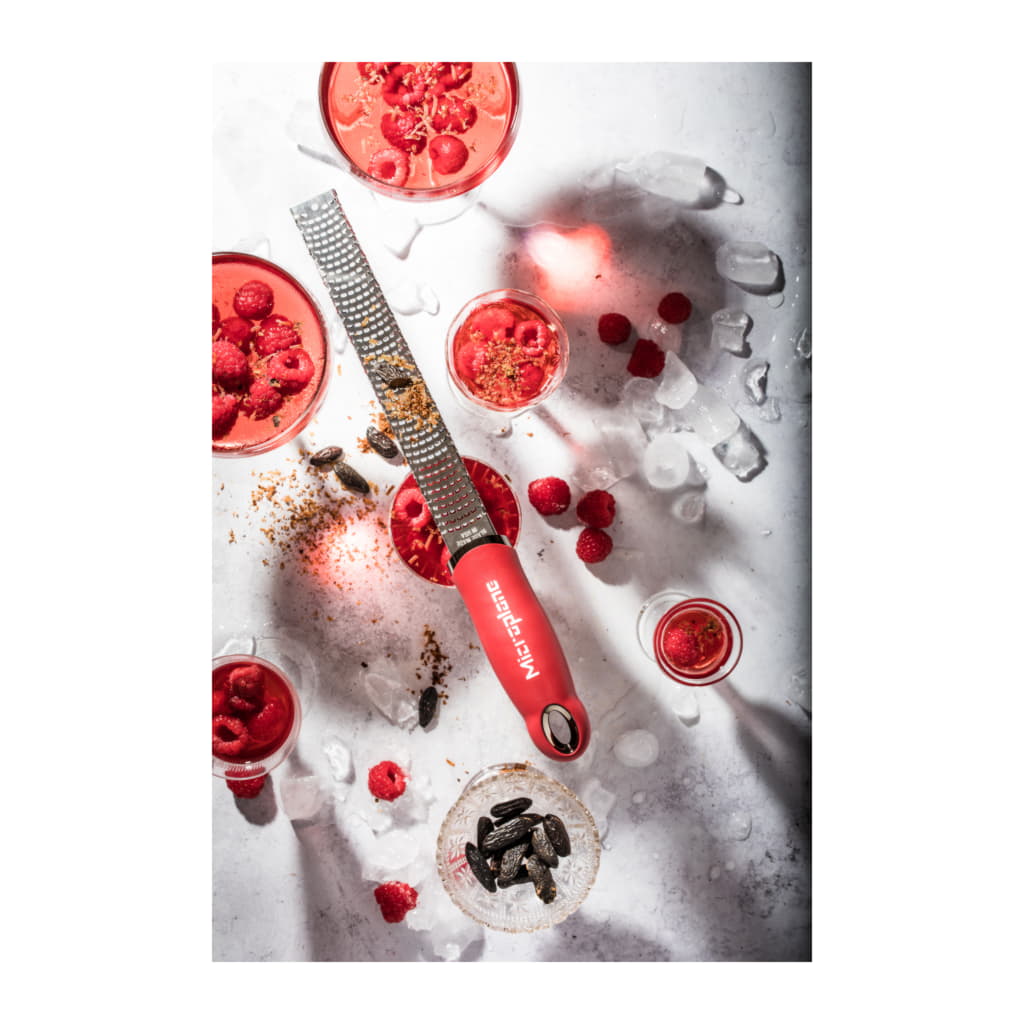 Fint rivjärn. Lämpligt för bl.a. citrusskal, vitlök, parmesan, muskot och lök. Softgriphandtag