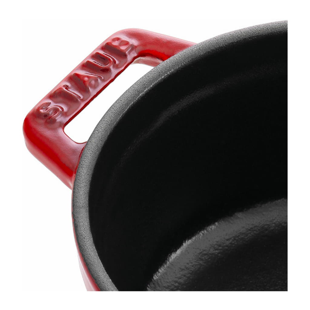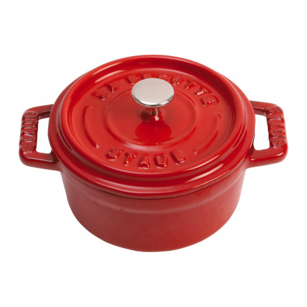 Med den runda, körsbärsröda grytan från den omtyckta serien La Cocotte blir det riktigt roligt att laga mat. Den är en snygg detalj i köket och matrummet och ett riktigt blickfång för dina gäster. Sådana grytor kommer från Frankrike och används traditionellt framför allt för att tillaga gryträtter. Du kan t.ex. enkelt göra en coq au vin eller någon annan specialitet från det franska köket. Men de lämpar sig precis lika bra för rätter från andra länder. Den här grytan från Staub har en höjd på ca 14 cm, en diameter på 20 cm och en volym på 2,2 l. Den är tillverkad av gjutjärn som lämpar sig extra bra för långsam stekning. Den behåller värmen länge och avger den gradvis. Gjutjärn håller även kyla mycket bra. Därför kan du även använda grytan för att göra kalla desserter. Kokkärl av gjutjärn kan användas på alla typer av spisar, även på induktionshäll och i ugnen. De är robusta, tåliga och lättskötta. Hos grytorna från Staub förstärks dessa bra egenskaper ytterligare genom en emaljering på insidan. Emalj gör dessutom maten ännu mer aromatisk, så att du med en gryta från Staub kan lyckas med många läckra rätter.