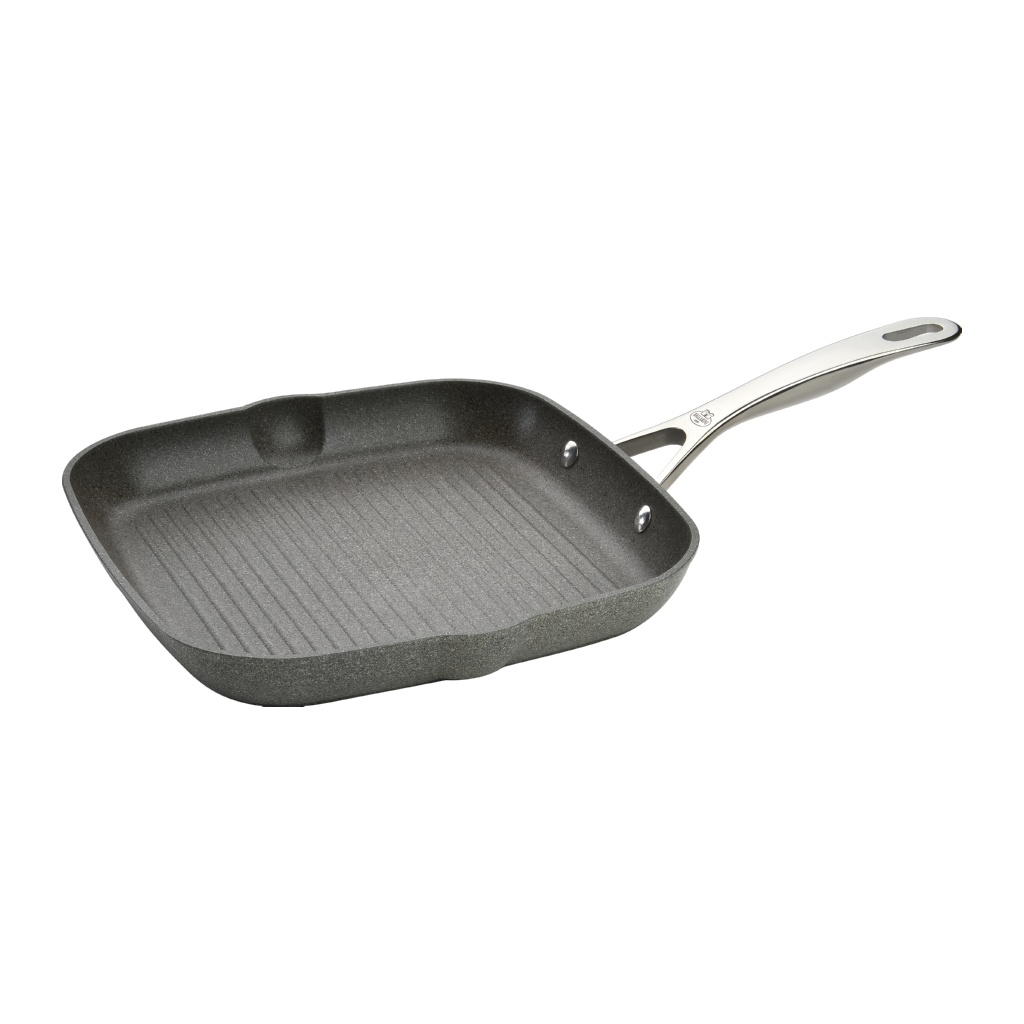 Du och din grill – är det “Grande Amore”? Då måste din grill vara mycket tapper nu, för med grillpannan från serien Salina från BALLARINI med en diameter på 28 cm får den riktig konkurrens. Grillpannan är smidd av massiv aluminium och värms därför upp extra snabbt. Grillräfflorna i botten av pannan skapar inte bara vackra ränder på köttet, fisken, grönsakerna eller brödet. De har också en positiv bieffekt: Dina råvaror ligger inte direkt i oljan eller fettet. Pannan är försedd med den extremt reptåliga non-stick-beläggningen i 6 lager, GRANITIUM Ti-X, plus ett extra titanskikt. Kokkärlets ergonomiskt formade handtag av rostfritt stål håller sig härligt svalt under grillningen. Det hela blir ännu mer elegant genom ytterbeläggningens ultrasnygga granit-stil. Grillpannans design kommer från Milano och från studion Matteo Thun & Antonio Rodriguez. Då kan vi bara säga: Arrivederci, kära kolgrill. Du måste hålla med om: Med den här grillpannan, som förresten tål maskindisk och kan användas på induktionshäll, har du svårt att hålla jämna steg.