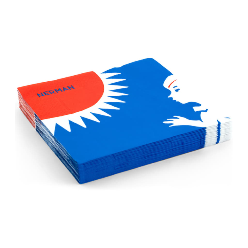 Servett med repeterande mönster med avbildning av den klassiska Solstickepojken skapad av Einar Nerman 1936. Ett fint komplement som lyfter dukningen.