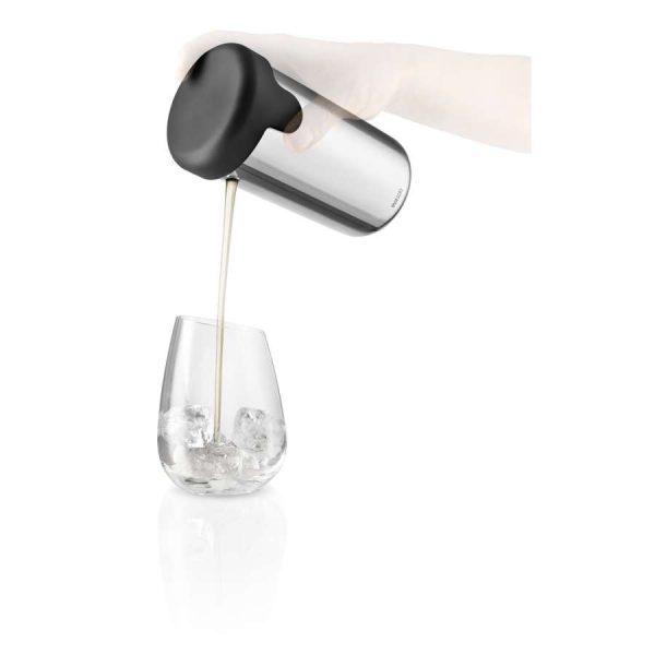 Klassisk shaker i funktionell design som gör det enkelt att blanda och servera drinkar. När shakern skakas hålls locket ned över hällpipen. Vid servering vrids locket några grader, så att hällpipen syns på den ena sidan av shakern. Ett luftintag på shakerns andra sida garanterar en fin och jämn stråle vid servering. Shakerns hällpip håller kvar isbitar utan att det behövs någon extra sil. Shakern gör serveringen 100 % droppfri och du slipper fläckar på duken och fula märken på drinkbordet.
