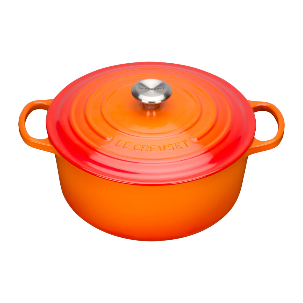 Den runda grytan i gjutjärn från Le Creuset är en oumbärlig klassiker i köket. Sedan 1925 har grytan tillverkats i högsta kvalitet på Le Creusets eget gjuteri i Frankrike. Gjutjärn är känt för att vara ett av de bästa materialen till matlagning då värmen fördelas jämnt i grytan. Detta gör den perfekt till exempelvis grytor eller grytbröd. Gjutjärnsgrytan håller sig varm långt efter att plattan stängts av vilket ger bra förutsättningar för energisnål matlagning. Samtidigt är detta en optimal egenskap vid servering av den färdiglagade maten som håller sig varm på bordet. Grytan finns i ett brett urval av Le Creusets välbekanta färger så att den matchar köket och dukningen. Gjutjärnsgrytan kan användas på alla värmekällor inklusive induktion och tål dessutom både grill, ugn och att diskas i diskmaskin. Vår kunniga personal hjälper dig gärna att välja rätt.