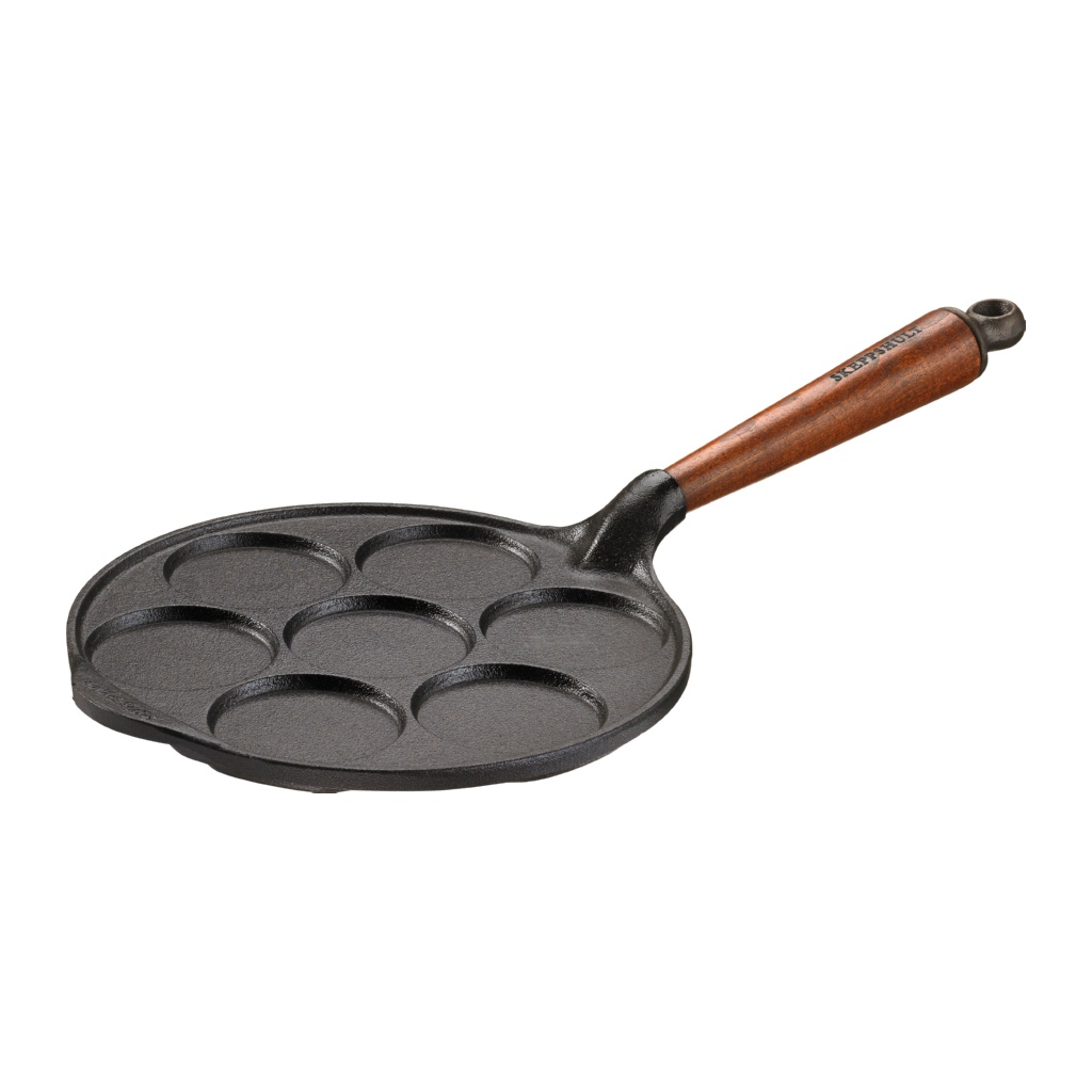 Gjutjärn, trä, stål och inbränd olja. Naturligt, enkelt, robust och fungerar på alla värmekällor. Med en naturlig non-stickyta som förbättras med användande är alla våra stekkärl gjorda för att hålla, år efter år, från generation till generation. Det är ett enkelt men ändå krävande hantverk. Varje detalj gjuts i en unik sandform som sedan slås sönder. Därför blir varenda skepphultprodukt unik och inte den andra exakt lik. Stolt hantverk från vårt gjuteri i de småländska skogarna. Tillverkat i Sverige med 25 års gjutjärnsgaranti. Handtag i brunbetsad bok som isolerar värme. 5 mm tjock botten för att sprida värme jämnt, få fin stekyta och för att hålla formen i generationer. Konkavt precisionssvarvad botten som gör att pannan står stabilt på spisen även vid mycket hög värme . Handslipade kanter runt om pannan. Stödhandtag som förenklar hantering. Fungerar på alla värmekällor såsom induktion och gas. Naturlig non-stick av svensk ekologisk rapsolja
