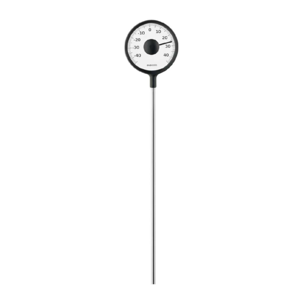 Utomhustermometer med spett för trädgården eller blomkrukor på balkongen, så att du alltid kan hålla koll på hur varmt det är. Termometern är lätt att läsa av och kan enkelt flyttas till den plats där du vill veta vilken temperatur det är. Rengörs med urvriden trasa. Tillverkad av rostfritt stål, plast och gummi. Mått: Ø: 11 x D: 3 cm / Spett H: 90 cm.