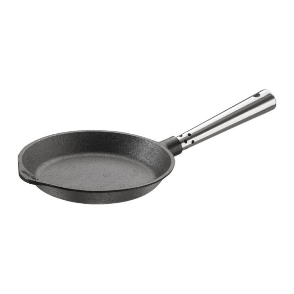 Gjutjärn, stål och inbränd olja. Naturligt, enkelt, robust och fungerar på alla värmekällor. Med en naturlig non-stickyta som förbättras med användande är alla våra stekkärl gjorda för att hålla, år efter år, från generation till generation. Det är ett enkelt men ändå krävande hantverk. Varje detalj gjuts i en unik sandform som sedan slås sönder. Därför blir varenda skepphultprodukt unik och inte den andra exakt lik. Stolt hantverk från vårt gjuteri i de småländska skogarna. Tillverkat i Sverige med 25 års gjutjärnsgaranti. Handtag i självventilerande stålskaft. 5 mm tjock botten för att sprida värme jämnt, få fin stekyta och för att hålla formen i generationer. Konkavt precisionssvarvad botten som gör att pannan står stabilt på spisen även vid mycket hög värme . Handslipade kanter runt om pannan. Stödhandtag som förenklar hantering. Fungerar på alla värmekällor såsom induktion, gas, ugn och öppen eld. Naturlig non-stick av svensk ekologisk rapsolja