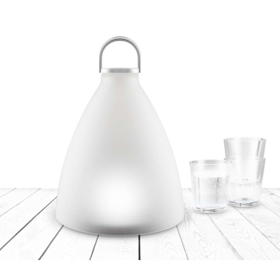 SunLight Bell har en unik design med inbyggda och dolda solceller. Solcellslampan sparar energi och drivs till 100 % av solenergi, och skapar en miljövänlig trivselbelysning på uteplatsen utan att någon sladd behövs. Lampan ger många olika placeringsmöjligheter och kan både hängas upp i ringen högst upp på lampan eller användas stående t.ex. på trädgårdsbordet. Med hjälp av en skymningssensor kan lampan ställas in för automatisk tändning. Den ger efter 8 timmars laddning i full sol upp till 20 timmars brinntid och har ett uppladdningsbart batteri som kan laddas upp till 1 000 gånger.