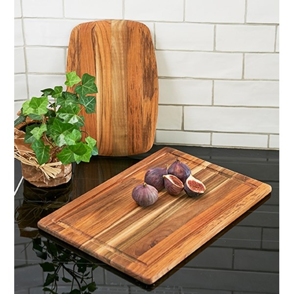 Skärbräda i teak. Eleganta rundade kanter ger vacker serveringsmöjlighet. Smal och lätt att förvara.