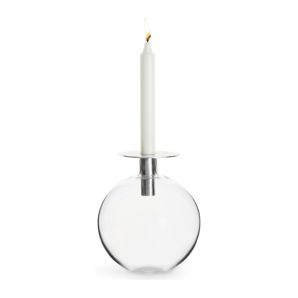 Top vas stor är av munblåst glas och metall. En enkel men dekorativ inredningsdetalj som fungerar lika väl som vas för enkla snittblommor eller som ljusstake med ett kronljus. Metalldelen är avtagbar.
