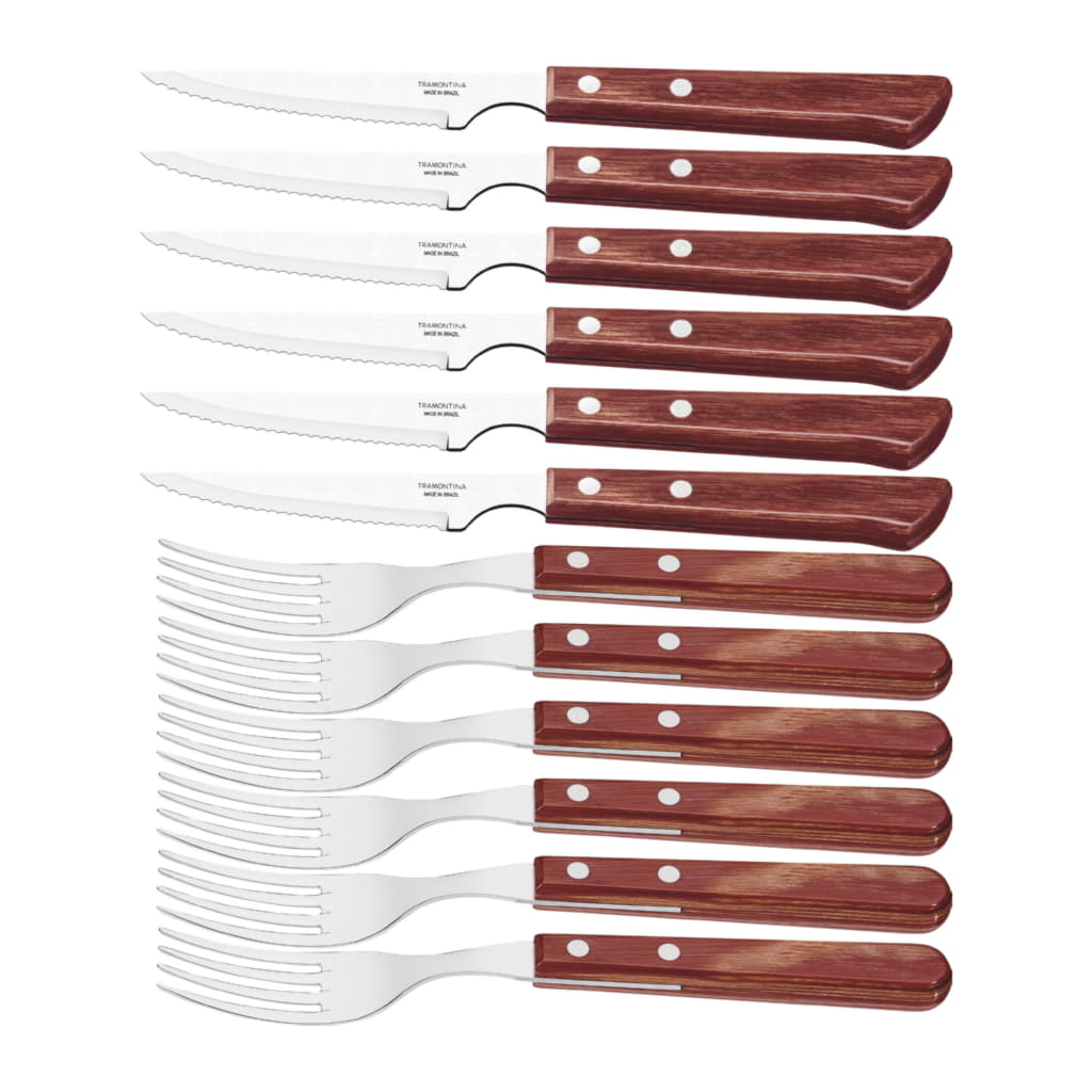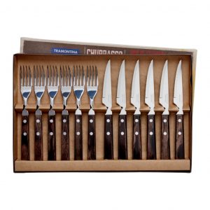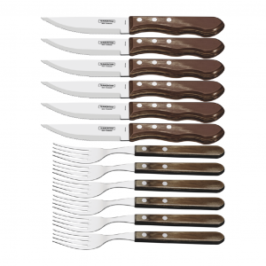 Handtag av trä gjort i Polywood gör att dessa bestick är sköna att hålla i och snygga att se på. Naturmaterialet tål diskmaskin. Förpackningen innehåller 6 st knivar och 6 st gafflar. Tillverkade i Brasilien.